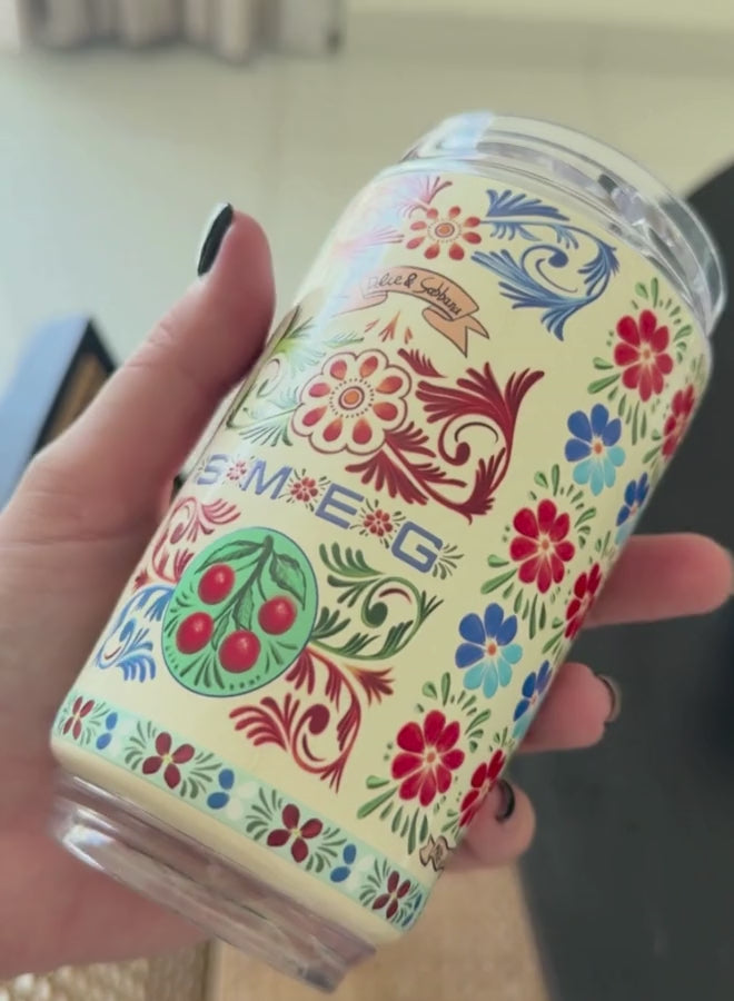 SMEG Wall Mug, 240ml Insulated Stainless Steel Coffee mug, Cream Print